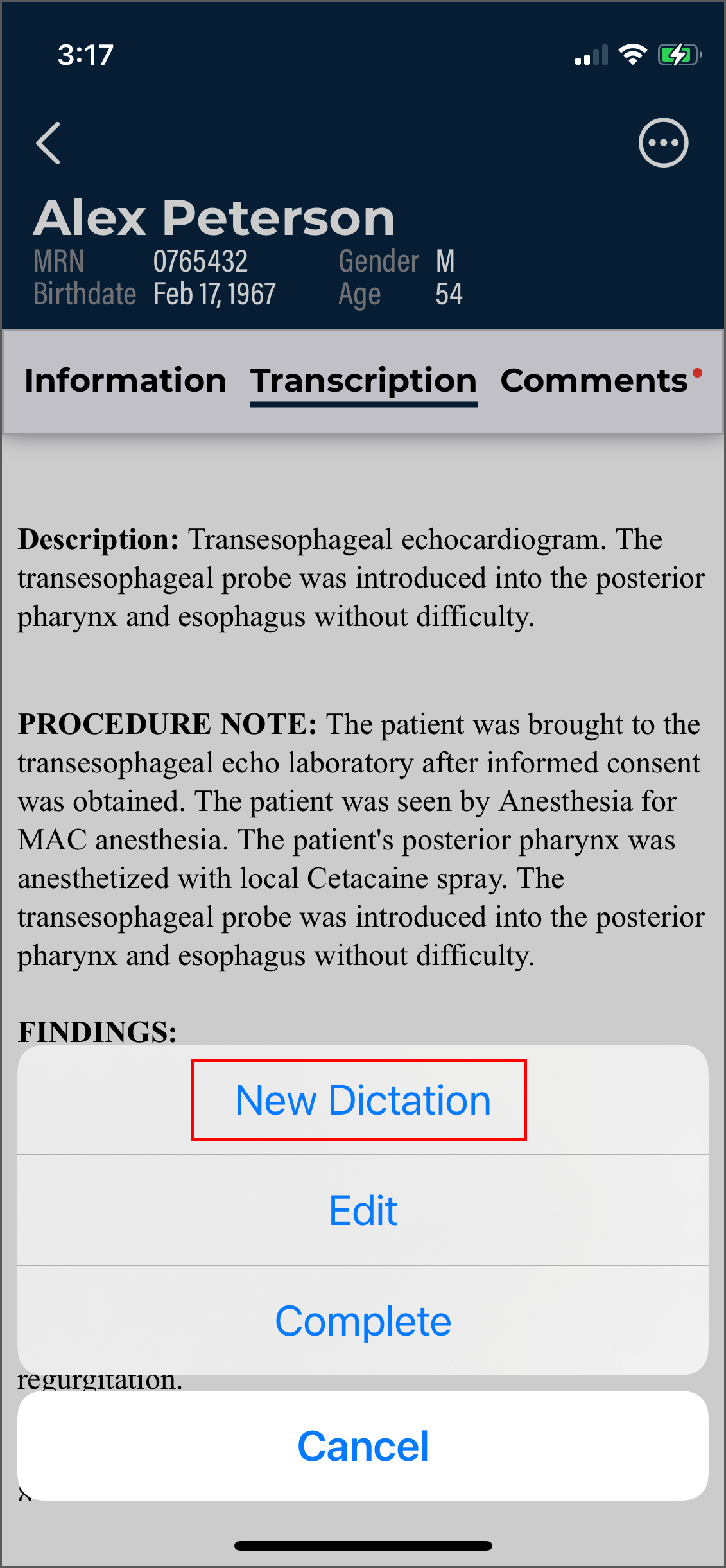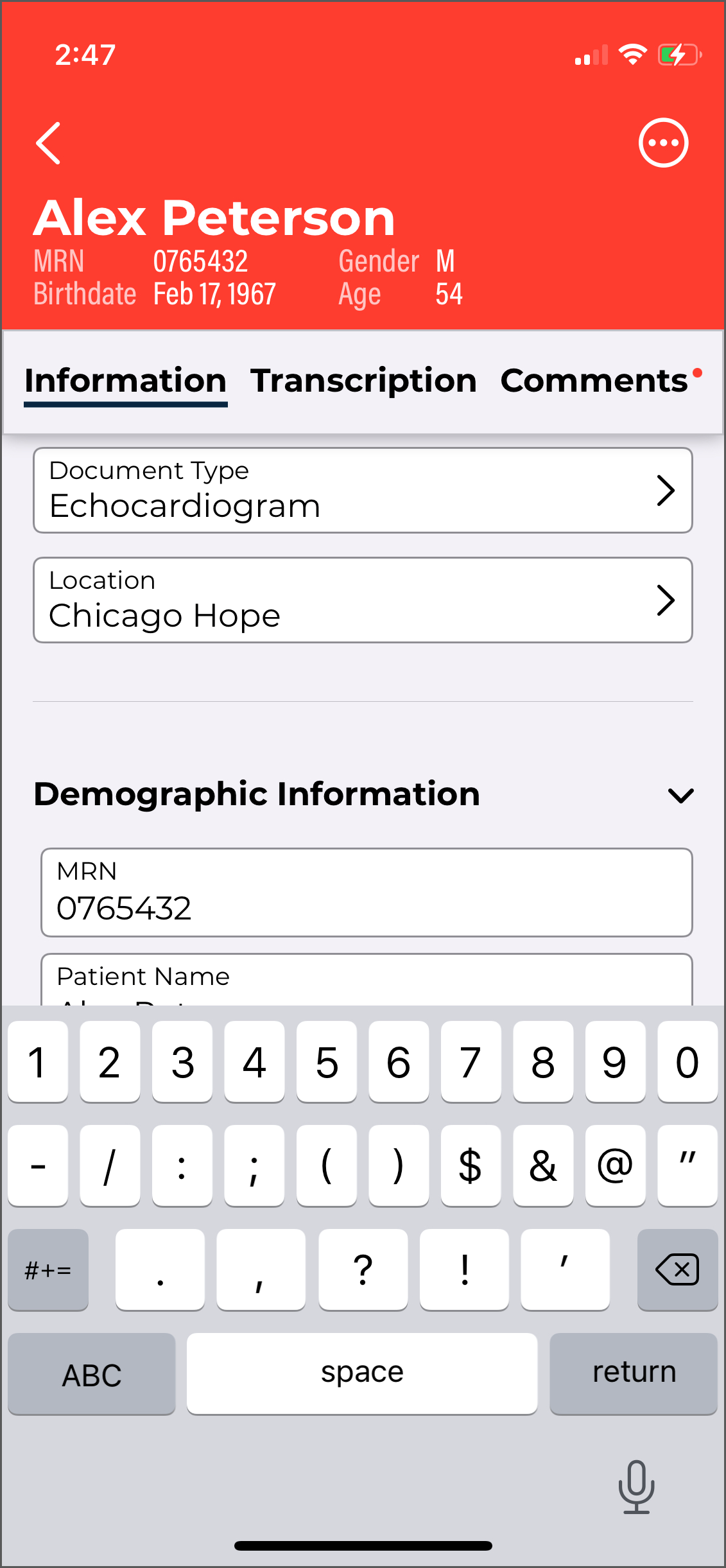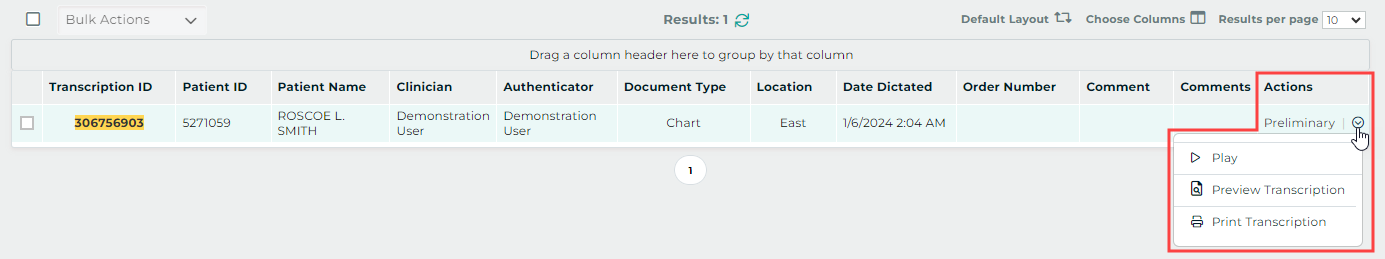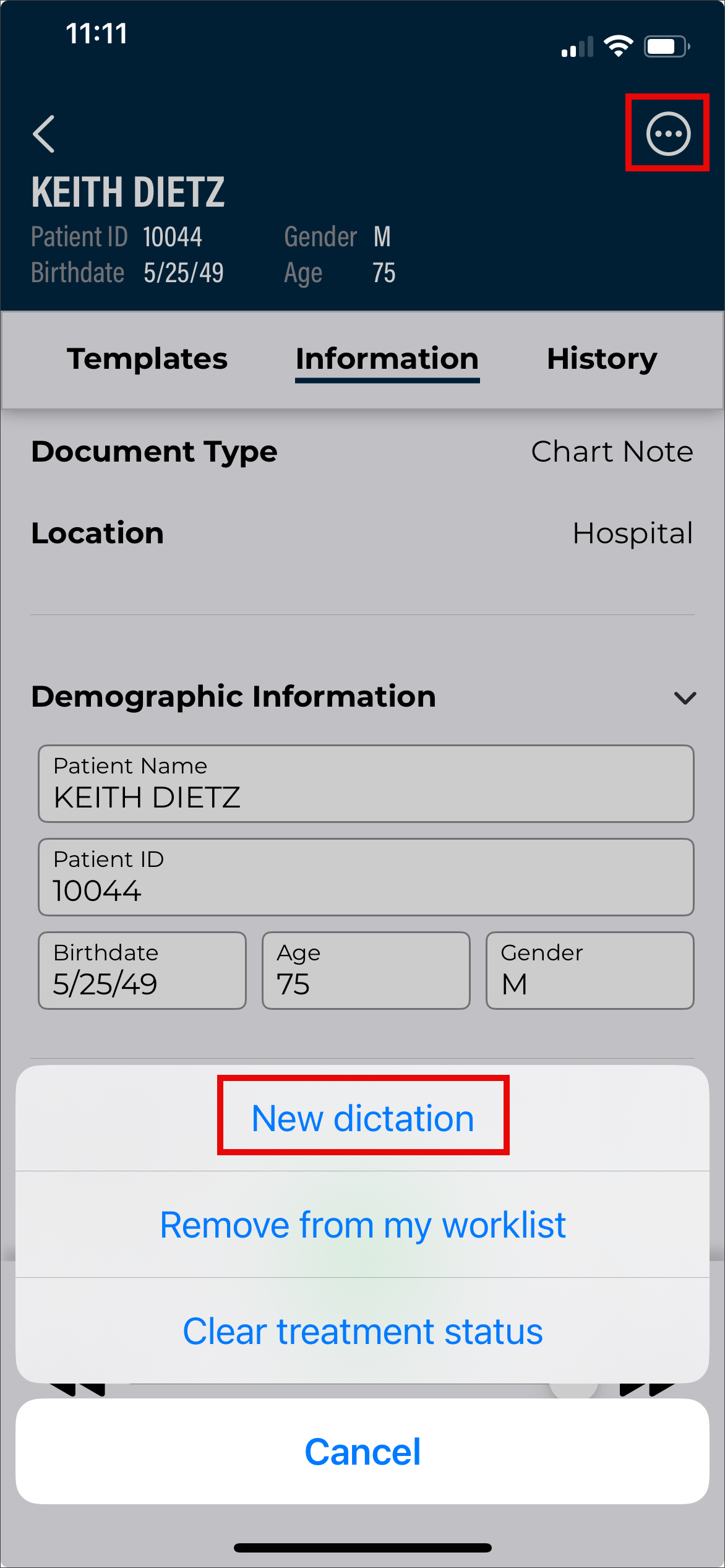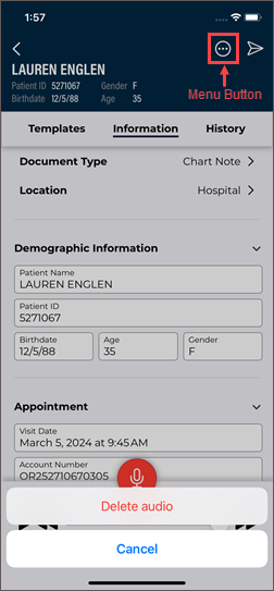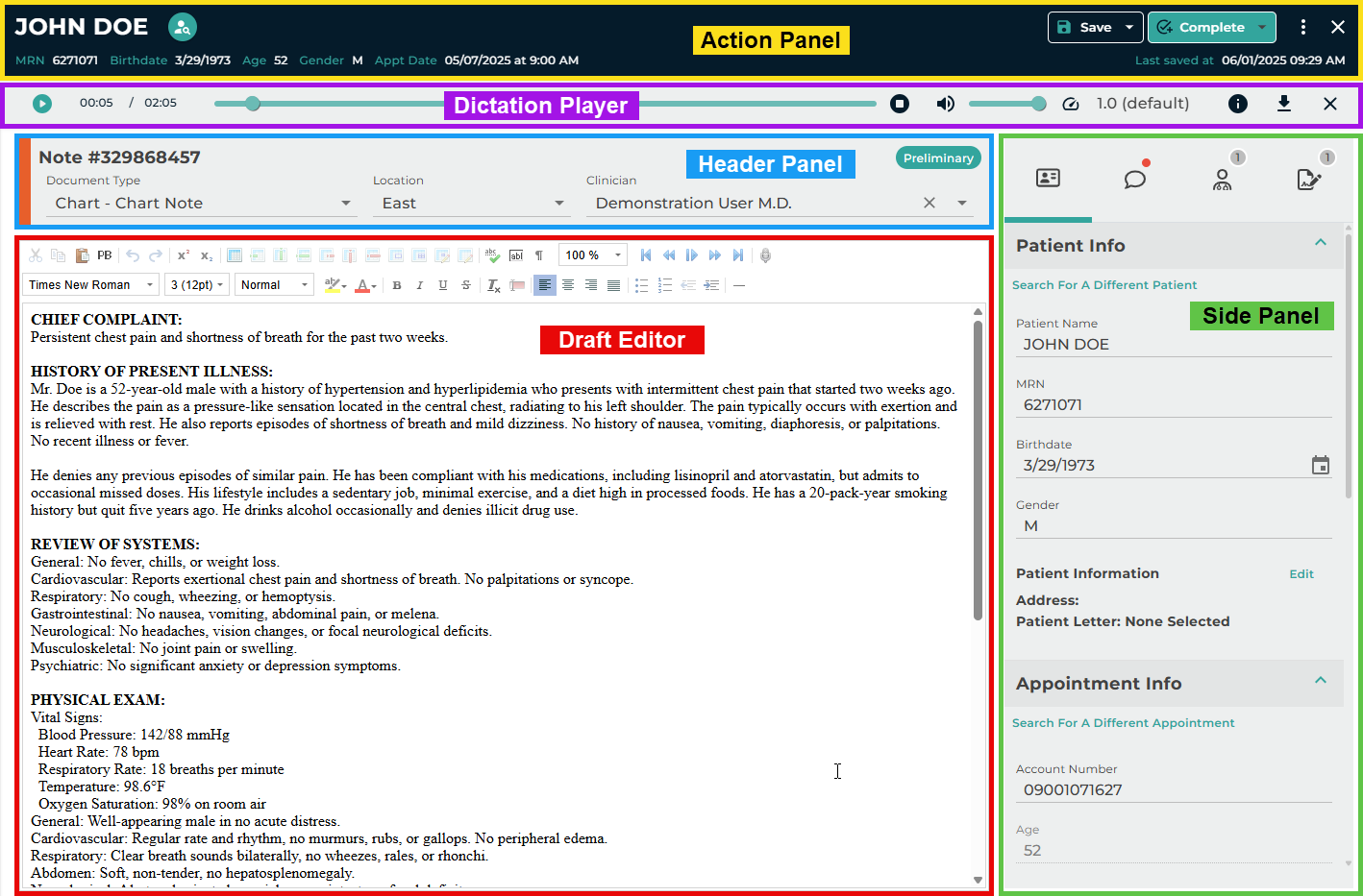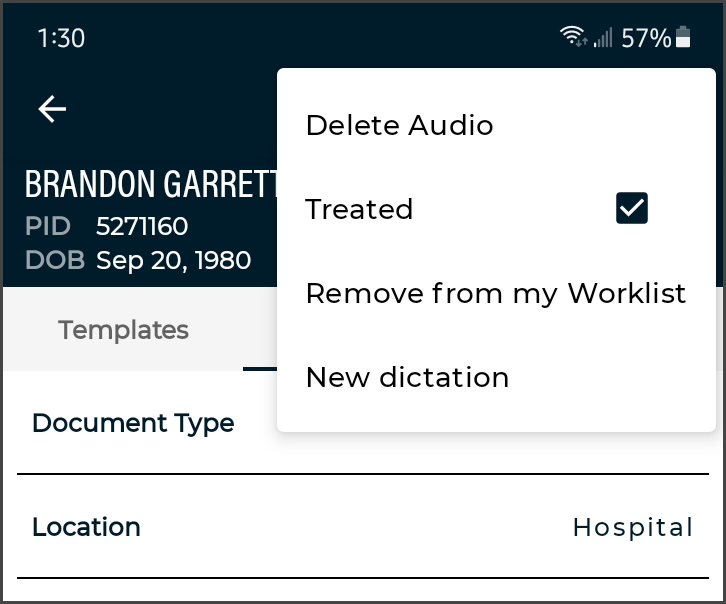 - Verify the correct Document Type and Dictator are selected in the demographics.