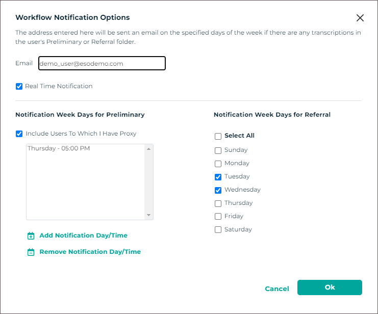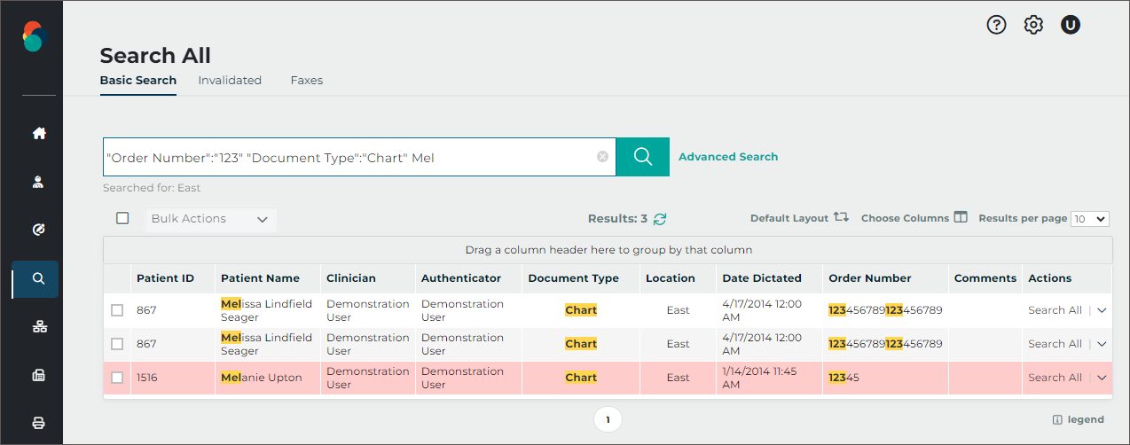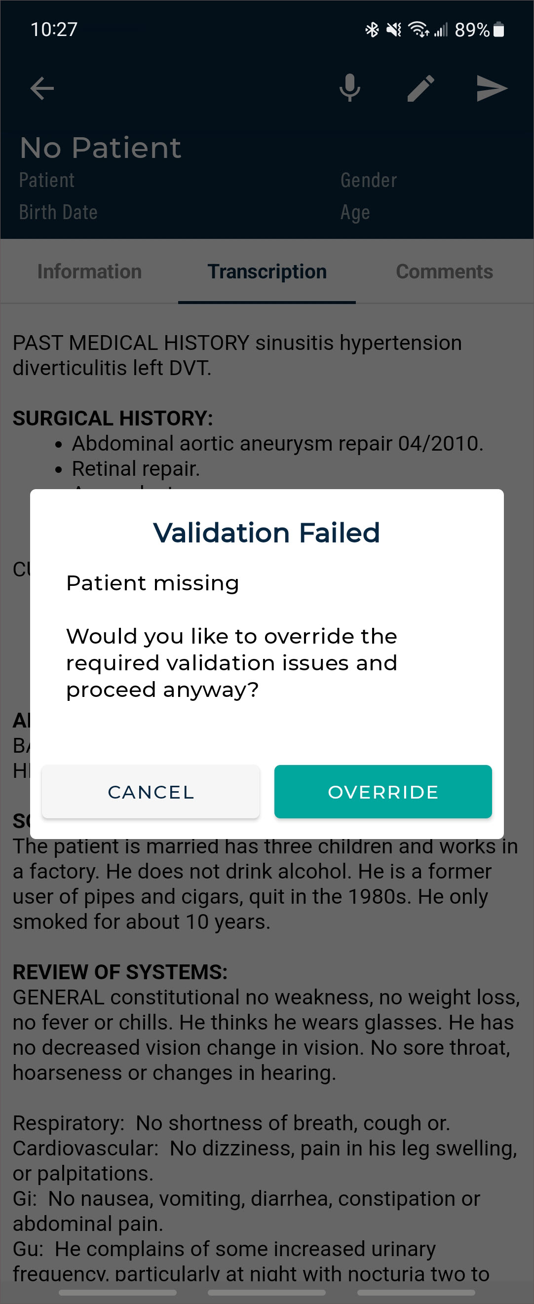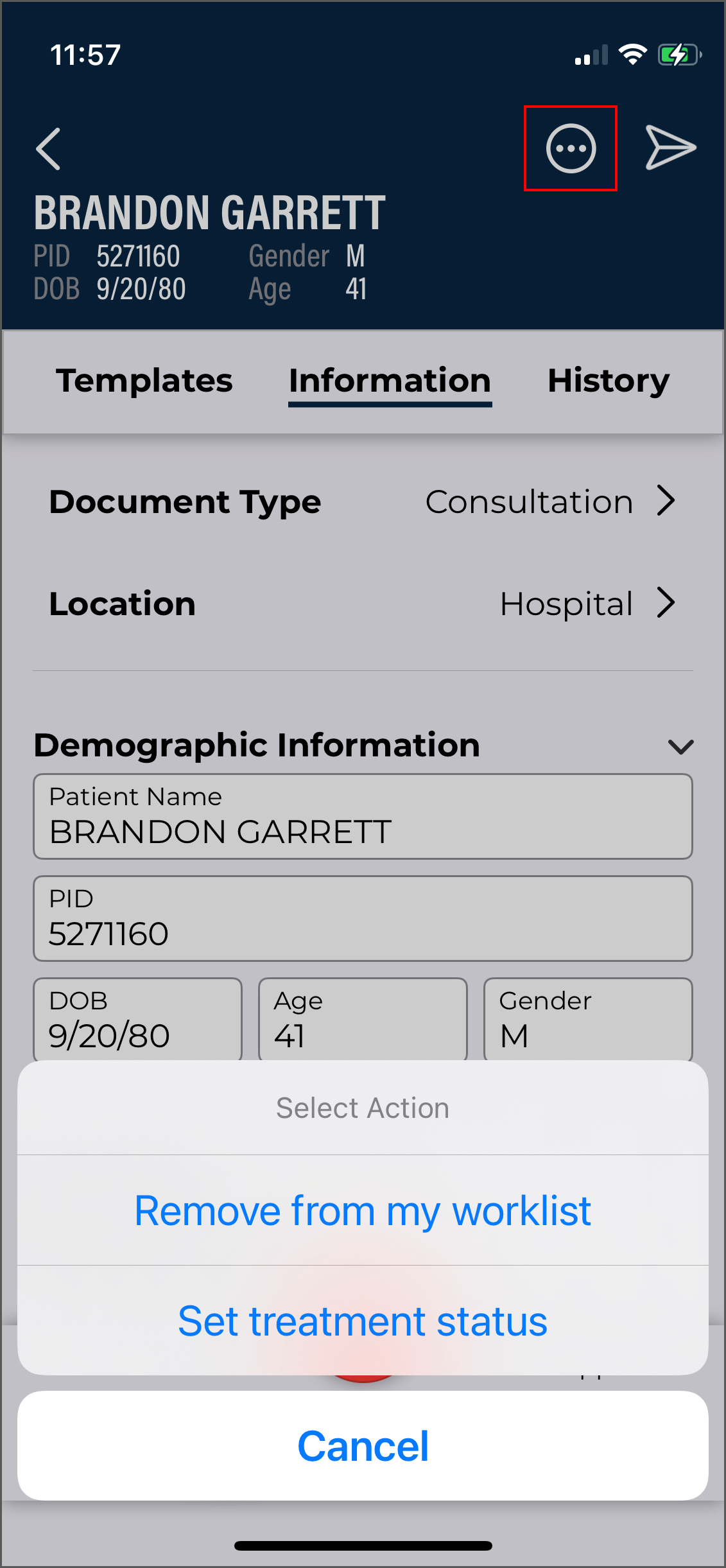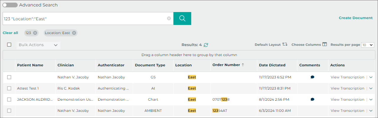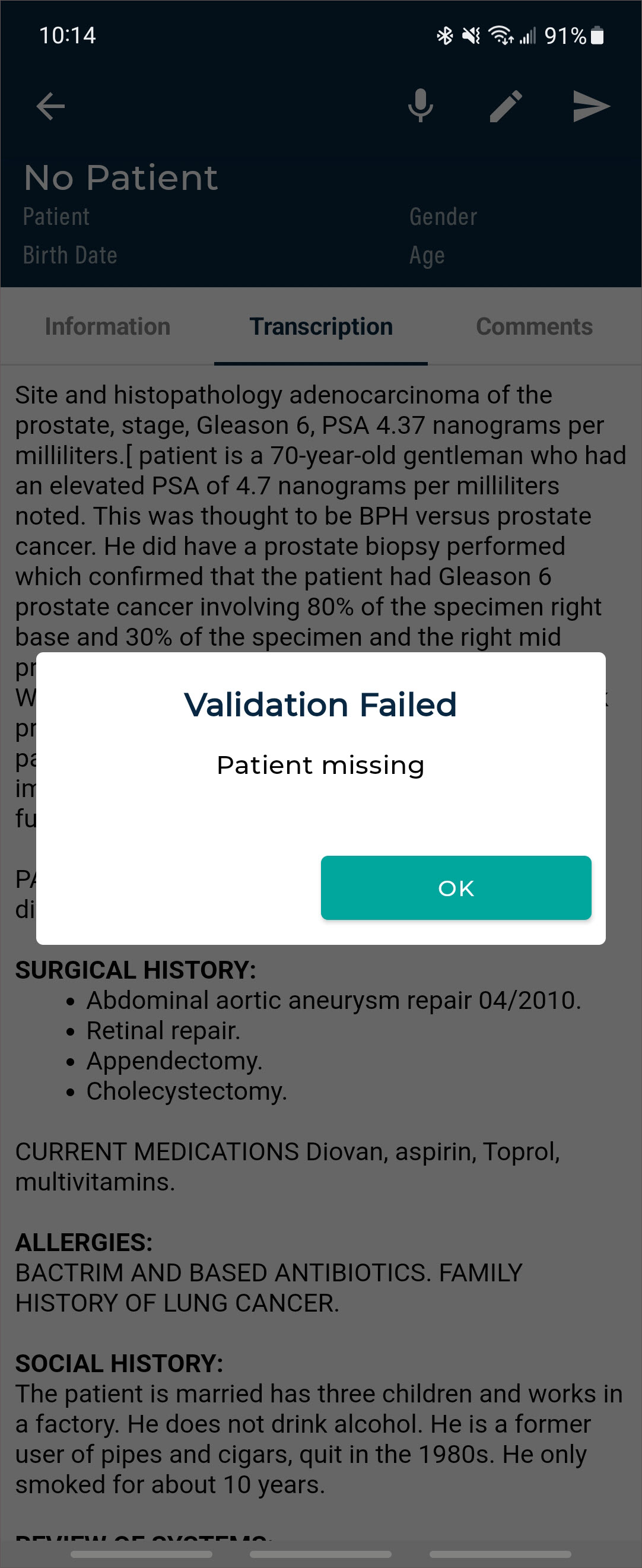 - Verify the correct Document Type and Dictator are selected in the demographics.