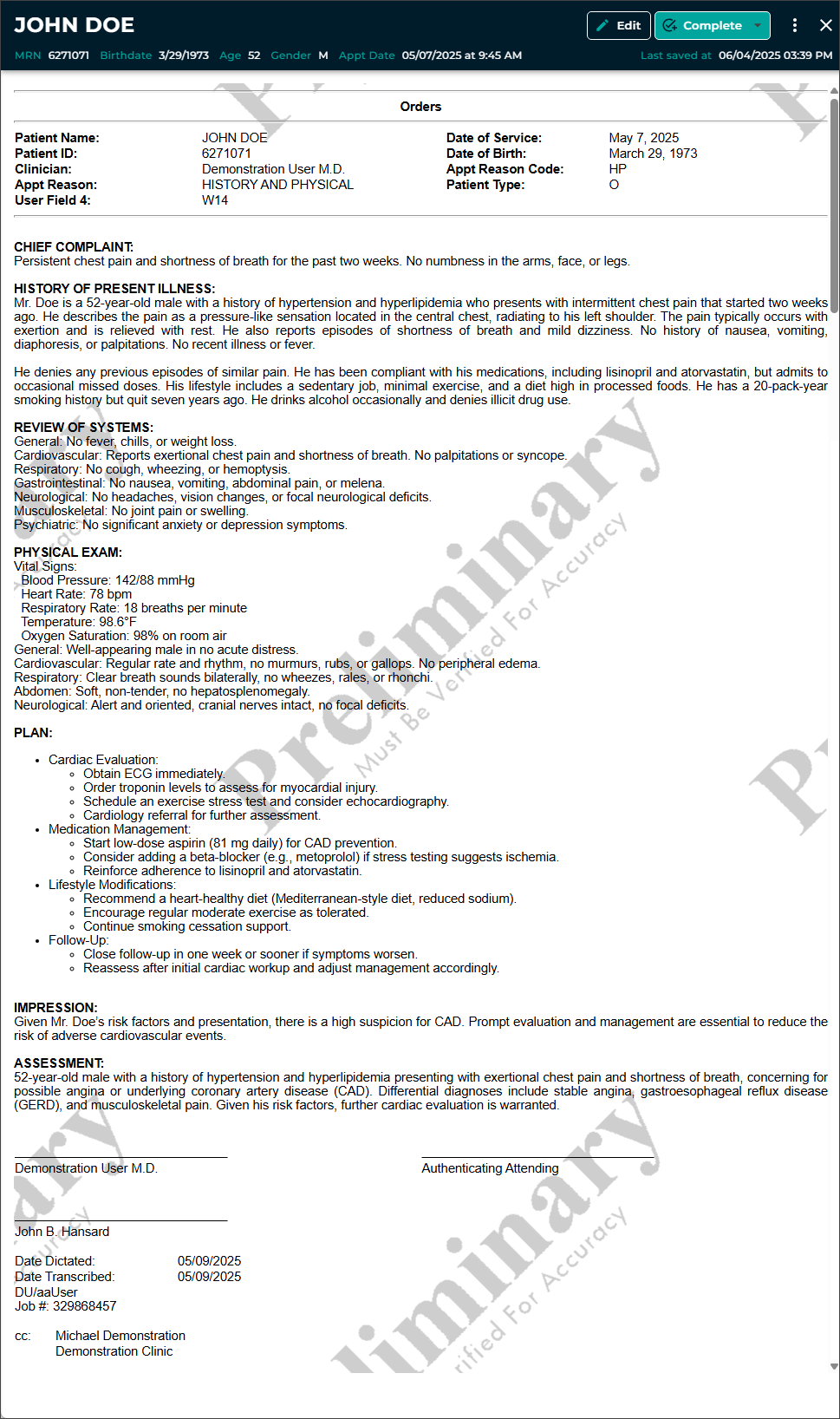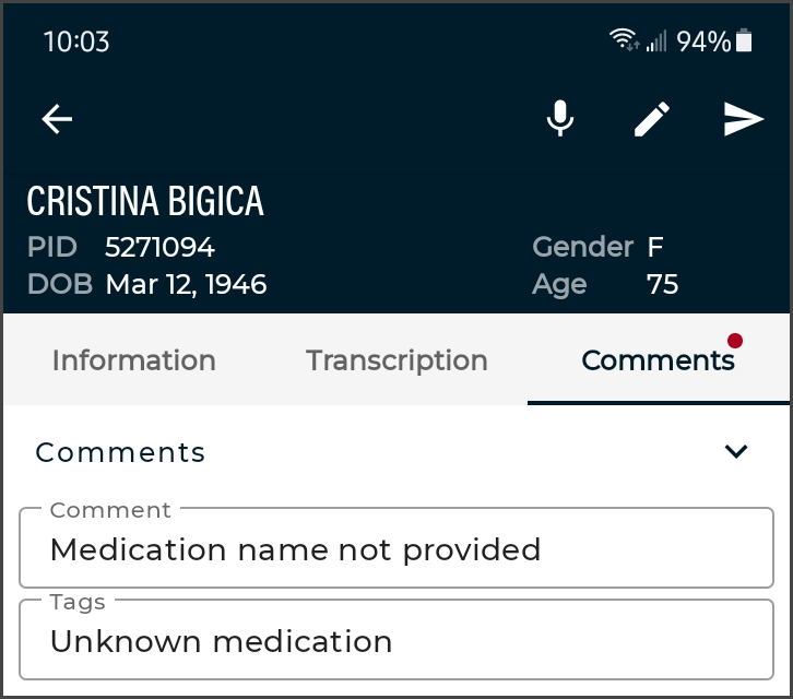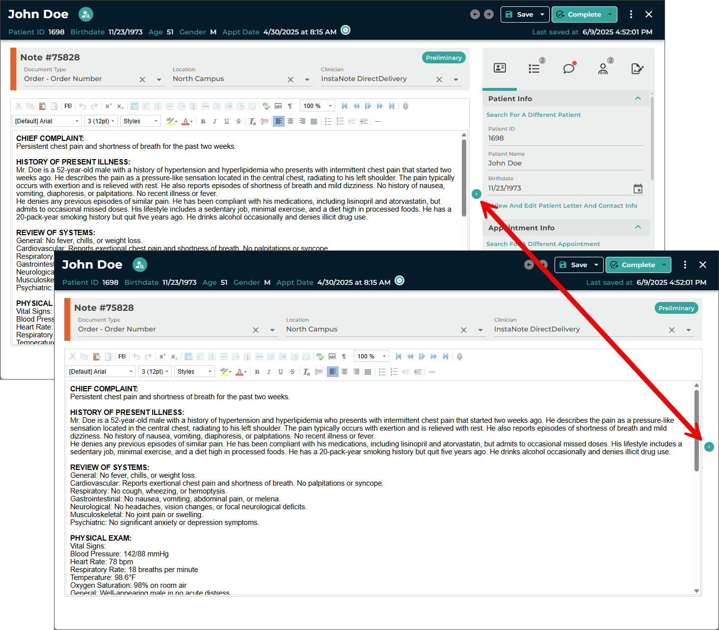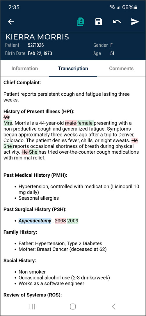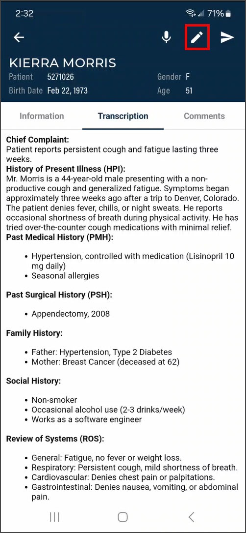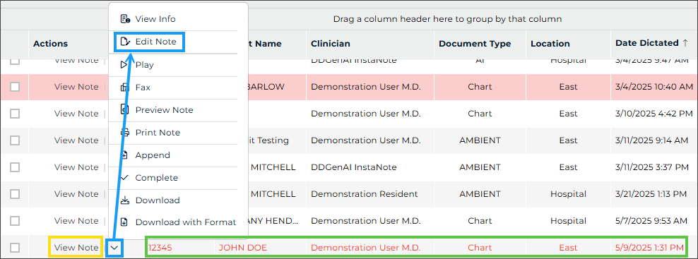- Manual edits can also be made to the note text and demographics.