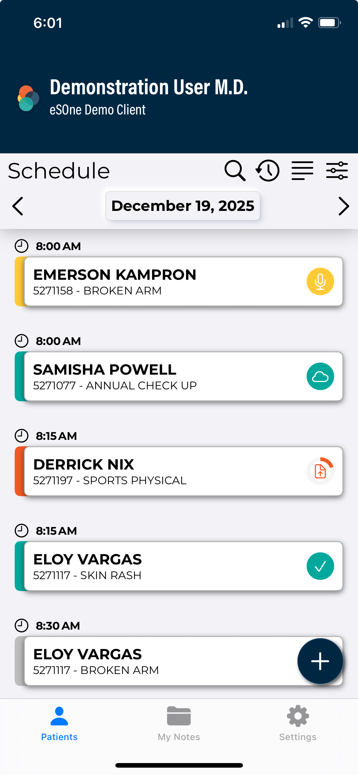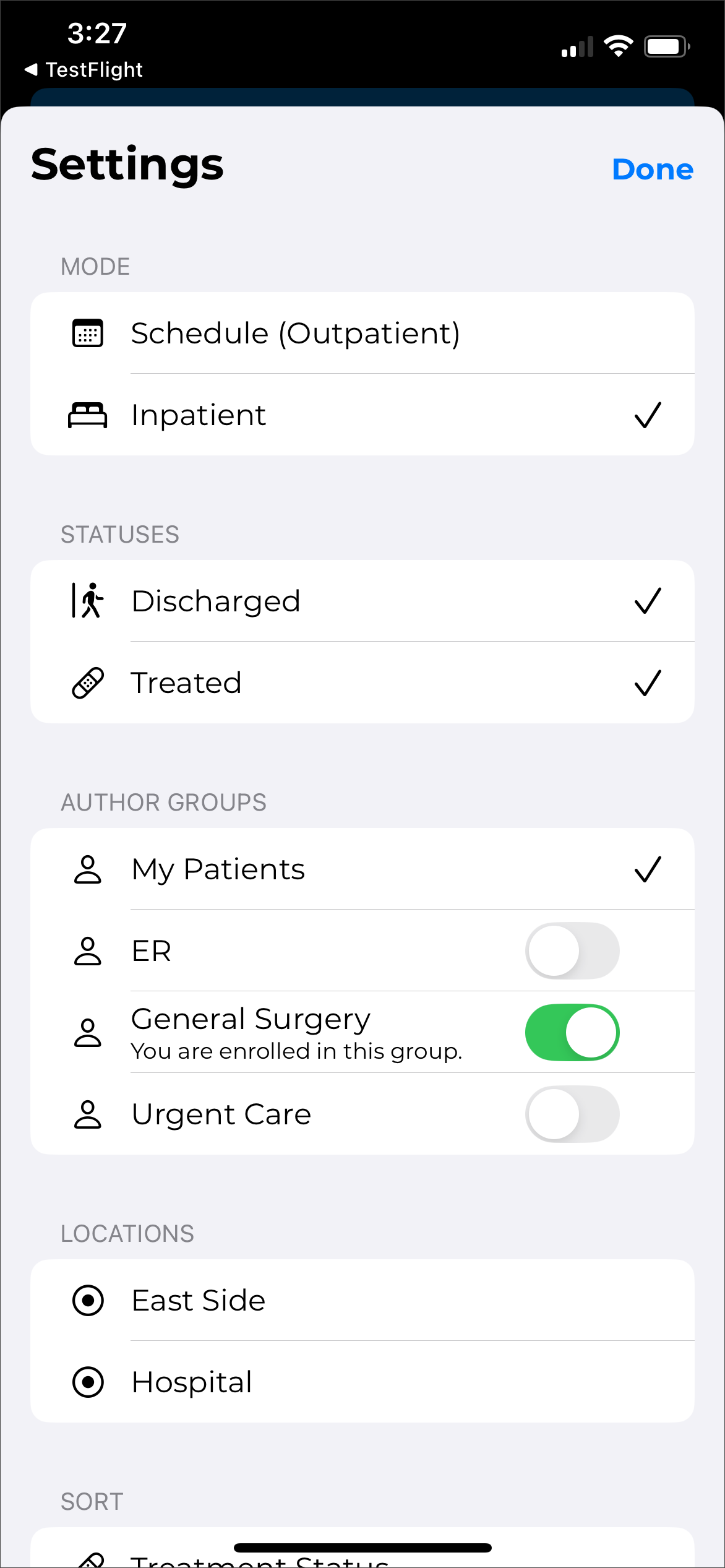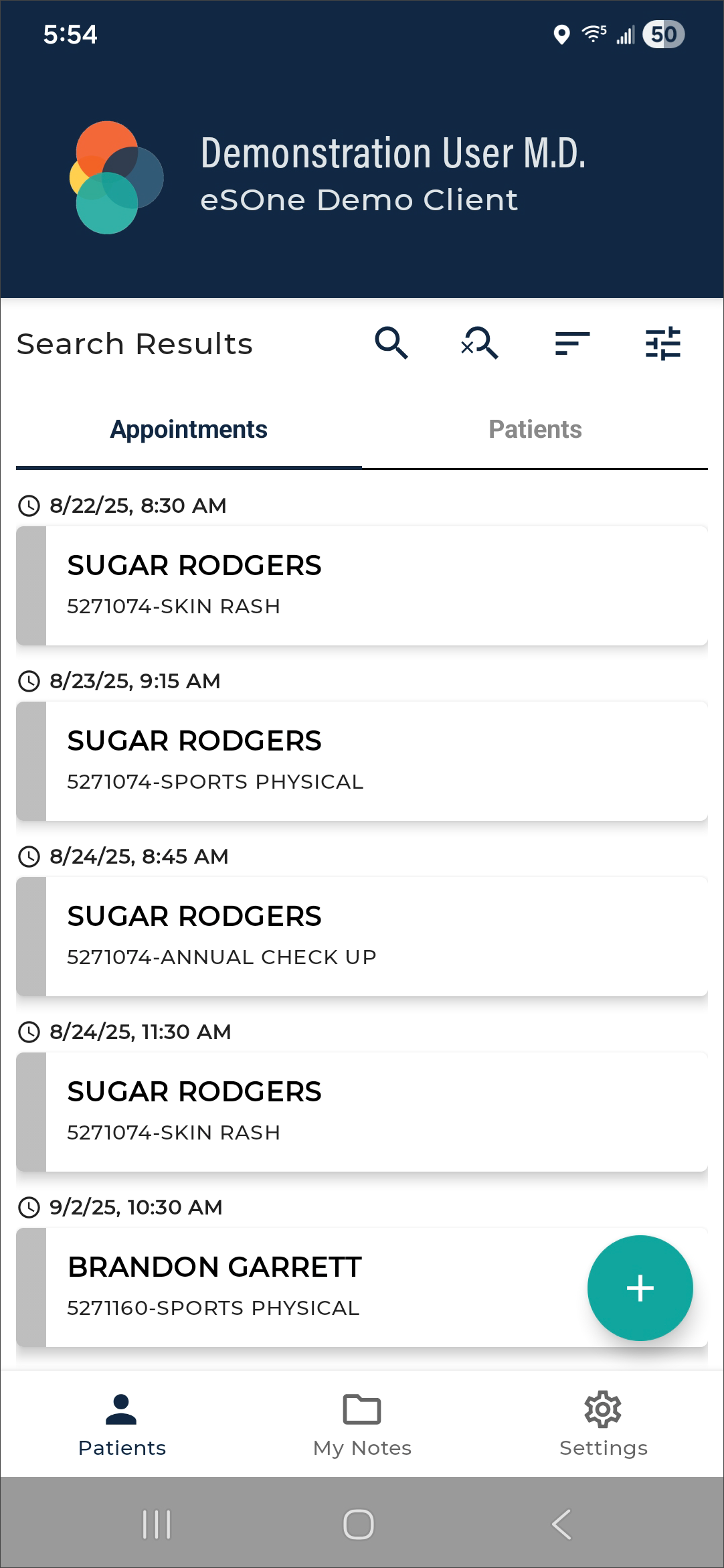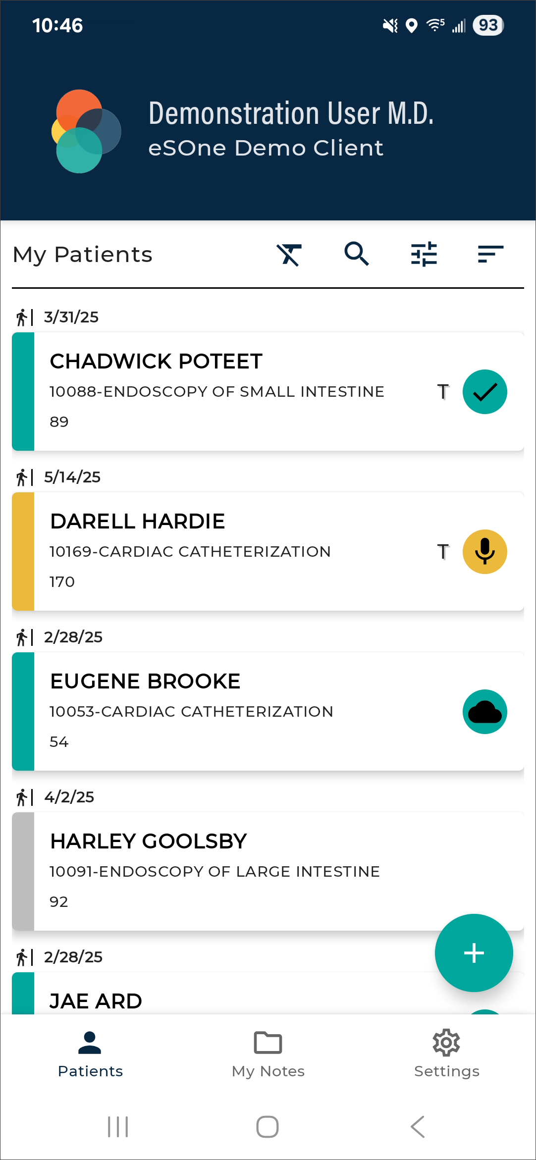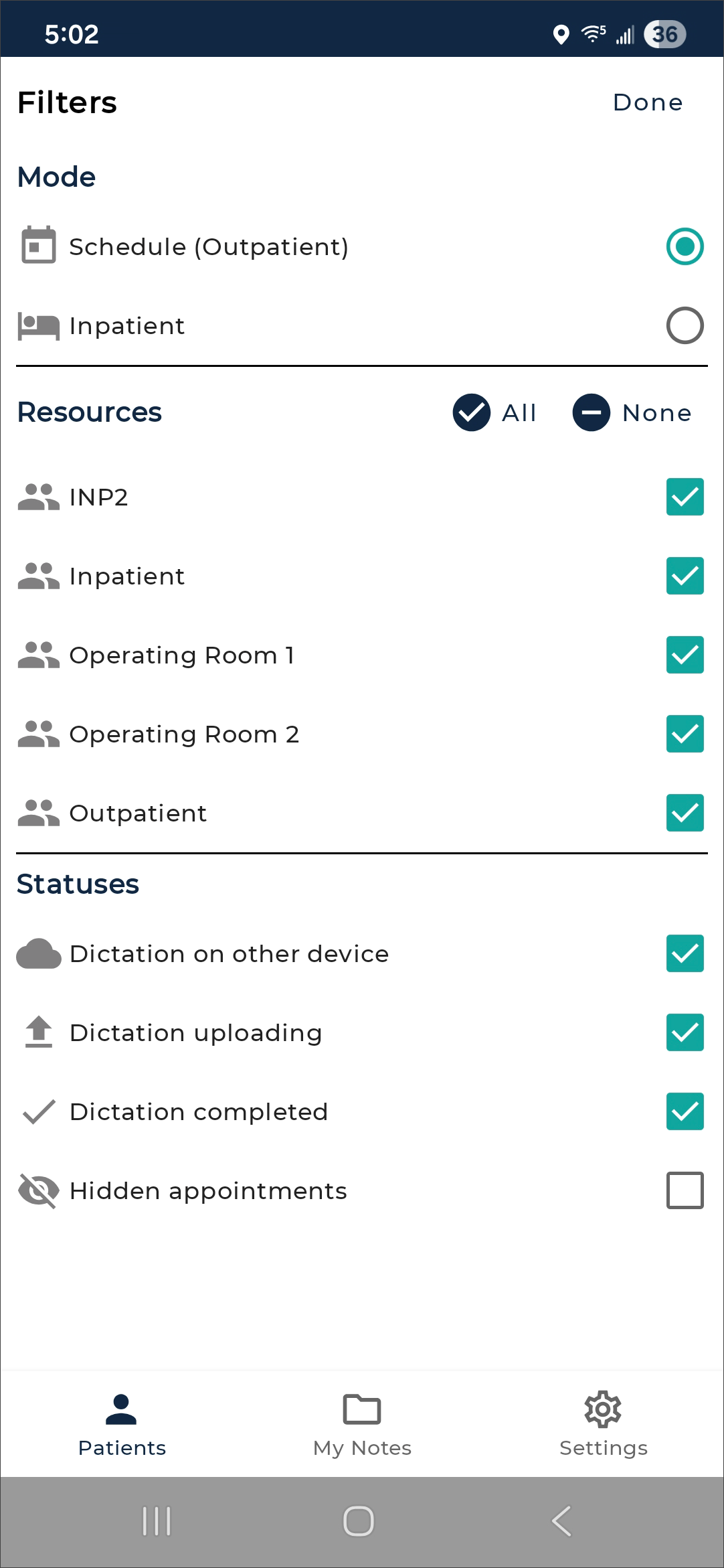 The eSOne mobile app supports outpatient and inpatient schedules. By default, the app opens to schedule (outpatient) mode. The mode can be changed in Filters the schedule filters. This section of the user guide will focus on the outpatient schedule mode. See Inpatient Workflow for more information about inpatient mode.