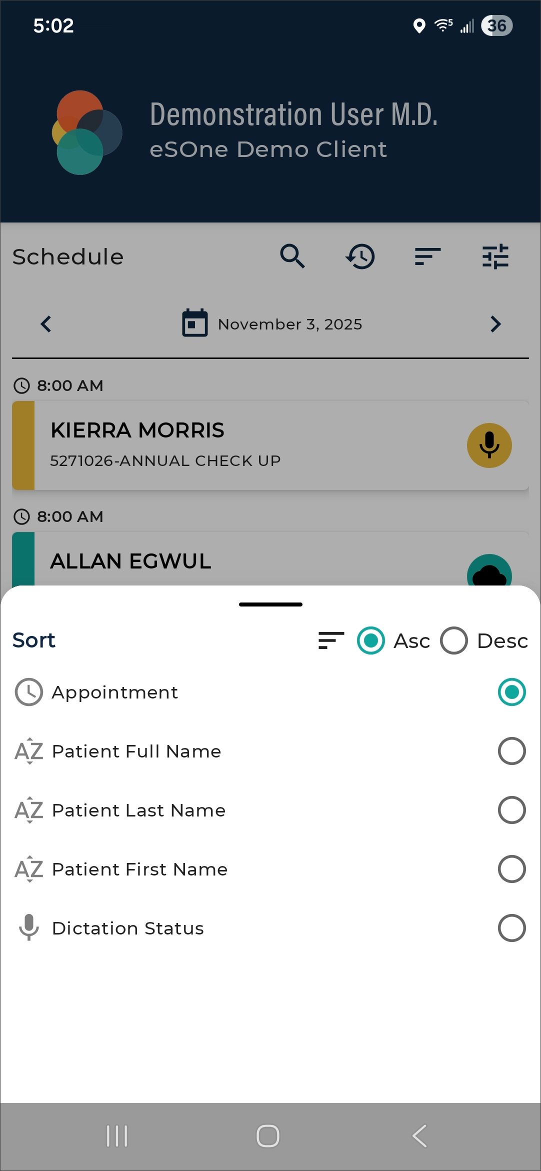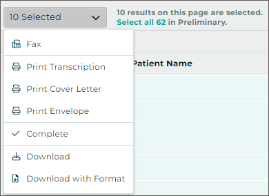 Users can minimize the number of appointments displayed on the schedule by filtering the list based on the dictation status. Statuses available for filtering are: