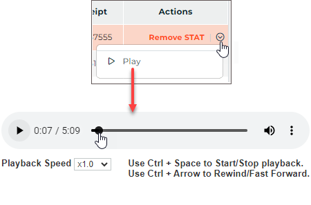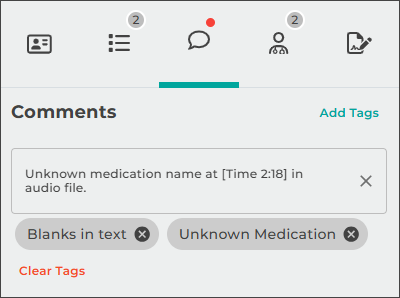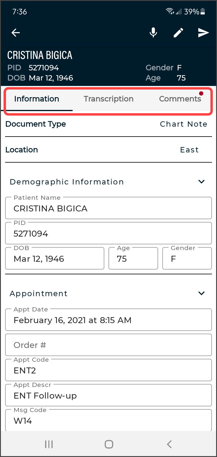 - Recording will continue while navigating between the Information, Transcription, and Comments sub-tabs.