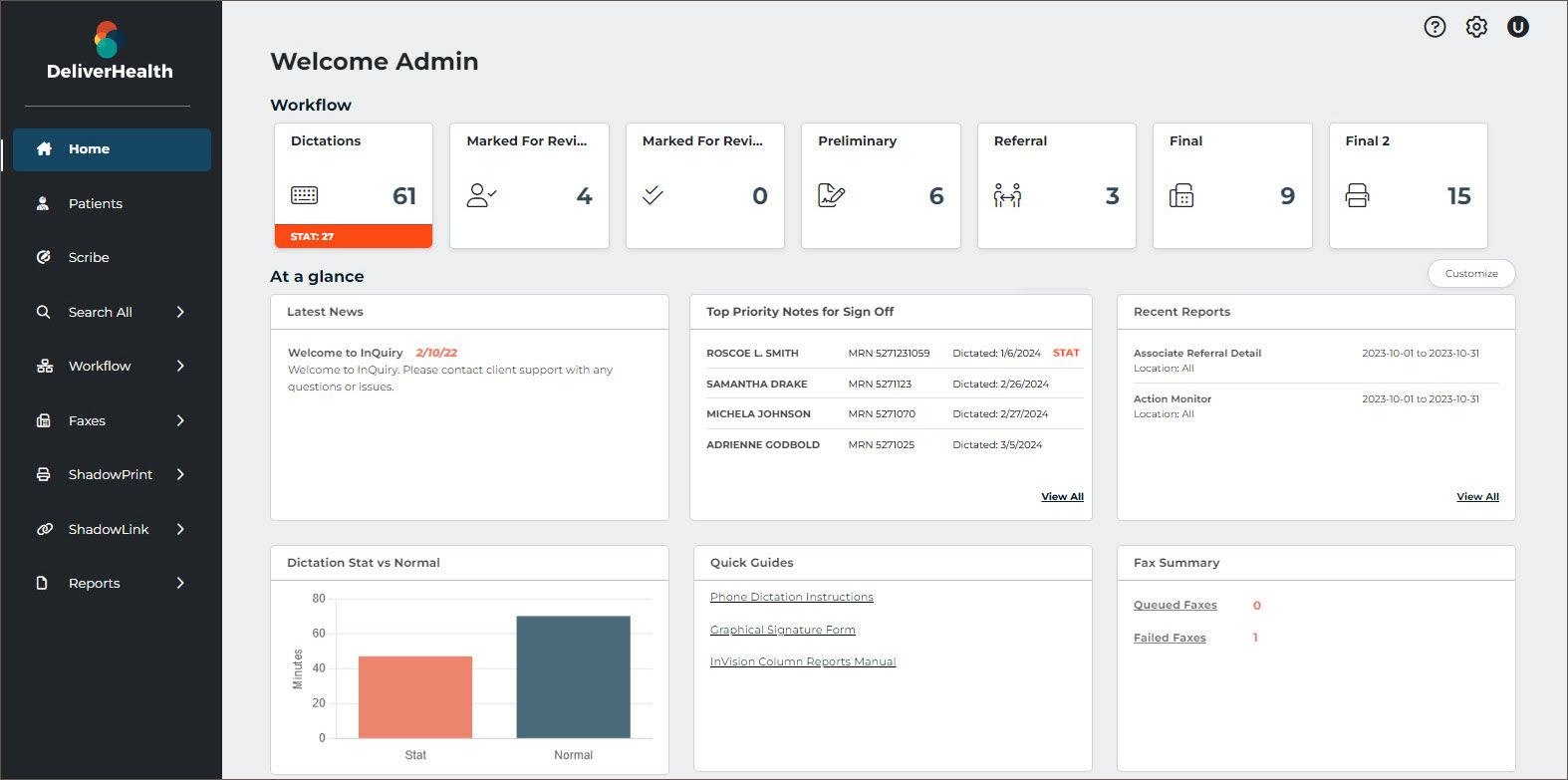 InstaNote documents can be reprocessed in InQuiry if the dictation was previously processed by InstaNote and both the dictator and selected document type have InstaNote Direct Delivery enabled.