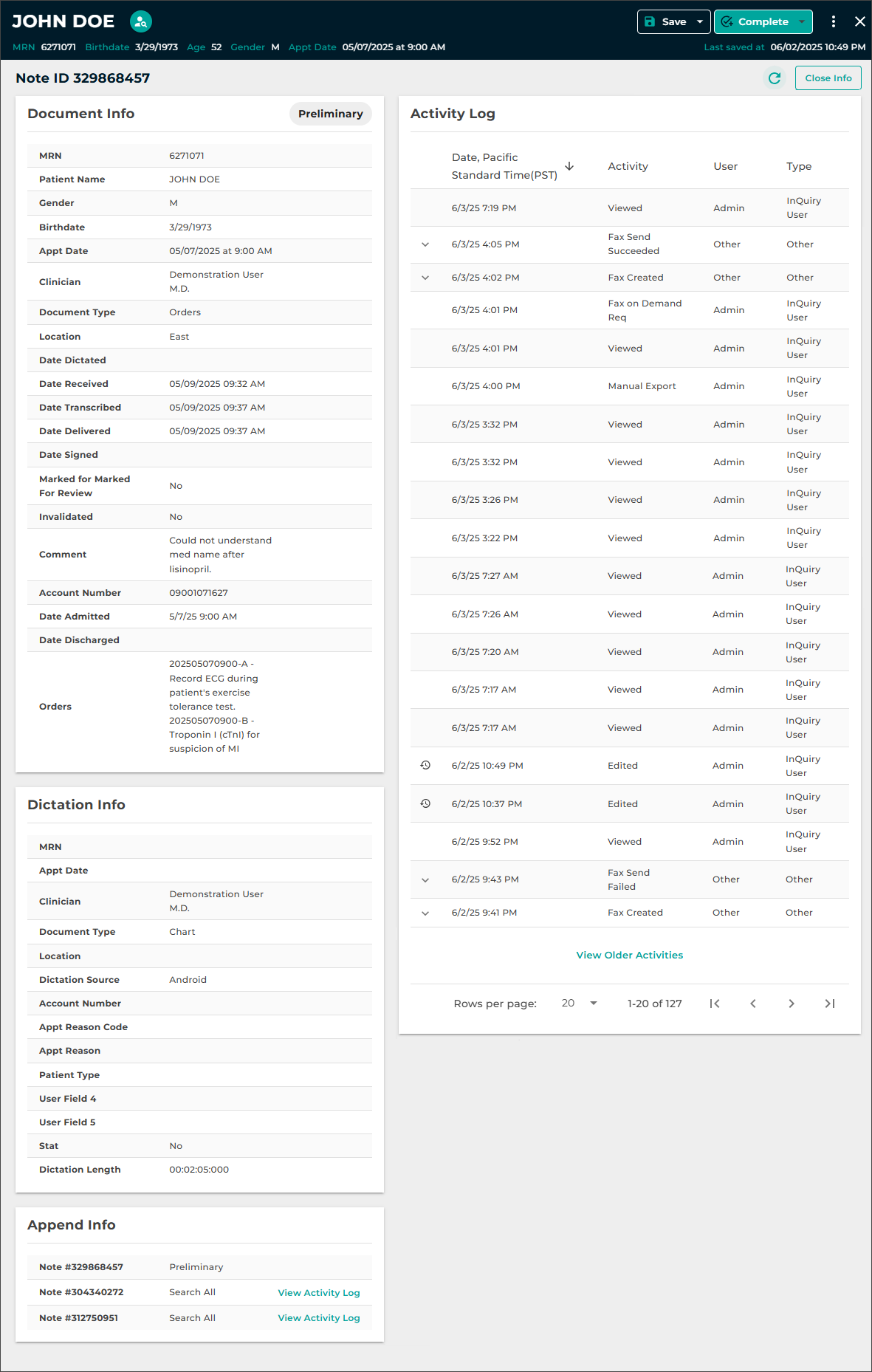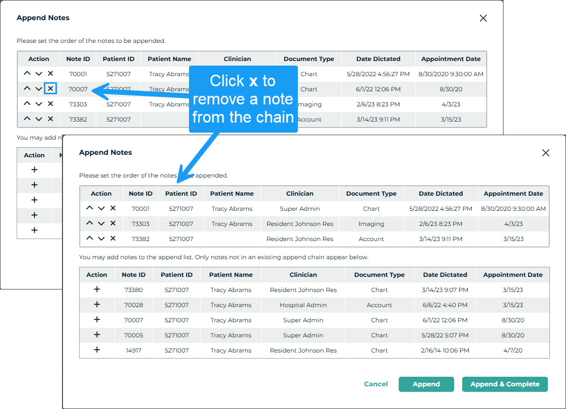 - Complete or Complete/Next to finalize the changes and move the note along in the workflow.