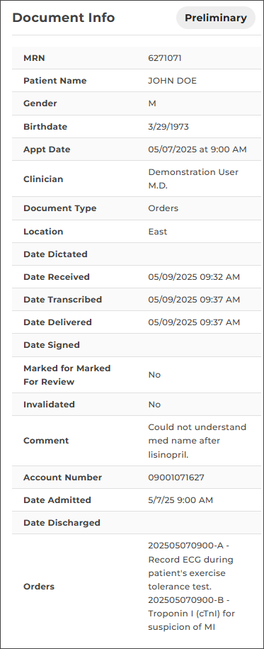 - If the dictation was received with the incorrect document type or dictator, change these values before reprocessing the note.