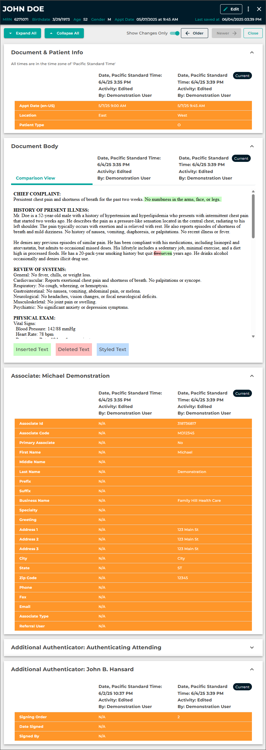 without saving changes. - Make any additional edits, such as updates to demographics, document type, location, or note text, as needed.