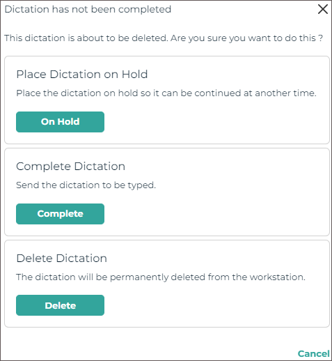Uninstalling the app will permanently delete any incomplete (on-hold) dictations; please verify all started dictations have been uploaded prior to uninstalling the app. The user will be prompted to choose the region upon the first login after reinstalling the app.