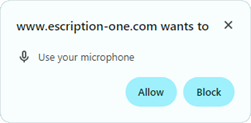 When entering the recording screen after the initial installation or reinstallation of the eSOne Mobile App, a request for permissions is presented. Permission to record audio, search for and connect to Bluetooth devices, and make and manage phone calls must be granted to enable recording controls.