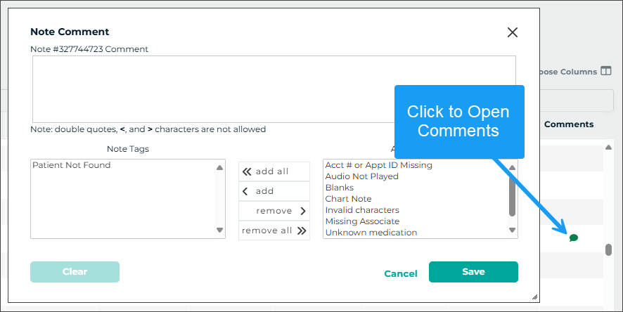 - Select the note from the queue.