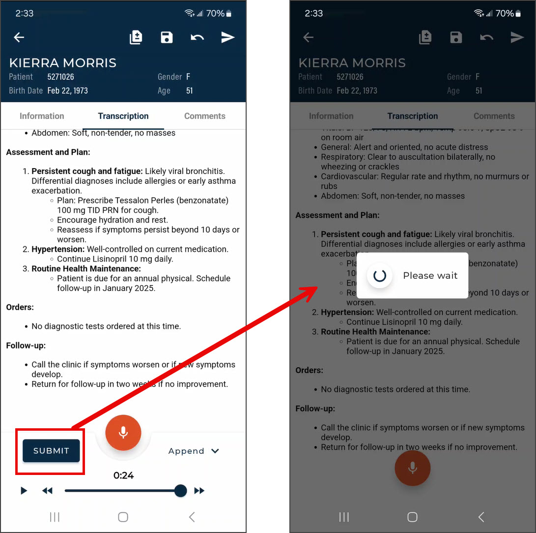 - Wait for the edits to process. Processing time depends on the length of the note and is complete when the "Please Wait" message disappears.