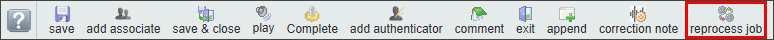 - The reprocess button will be disabled or removed from the toolbar if the dictation was not previously processed by InstaNote or if the document type or dictator do not have InstaNote Direct Delivery enabled.