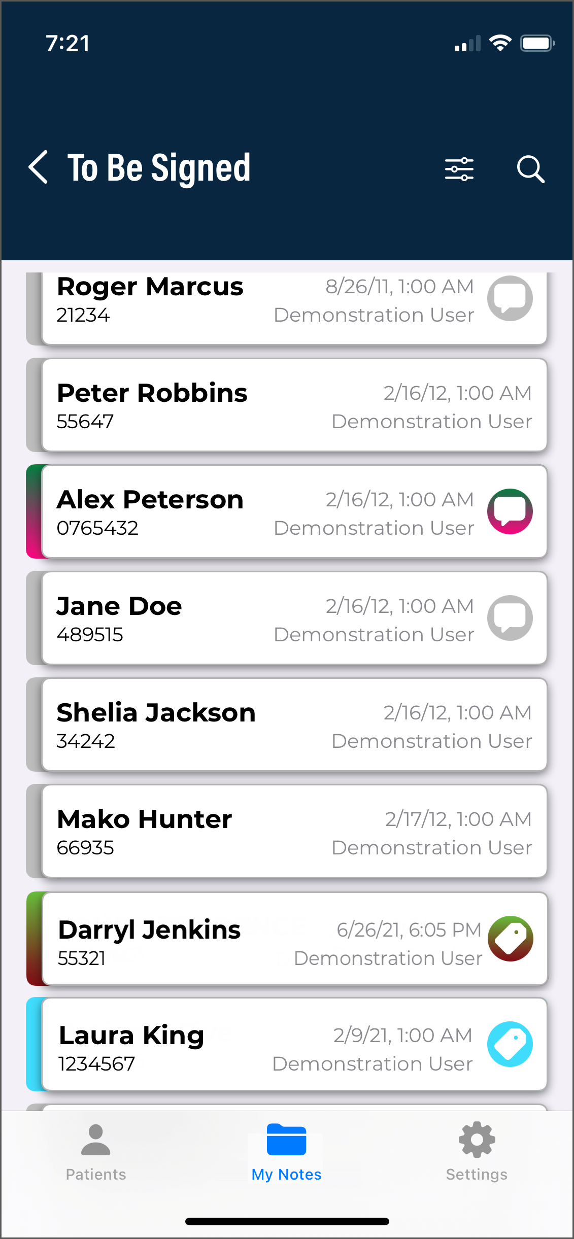 The Complete button may also sign notes, depending on where they are in the workflow.