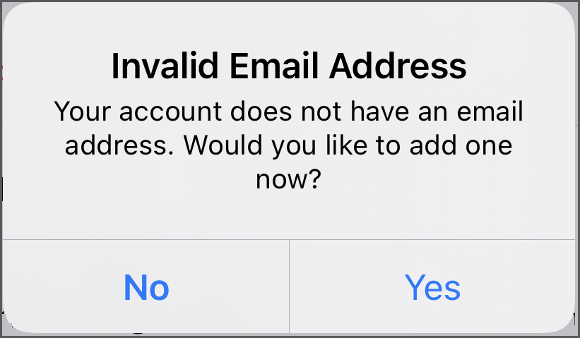 Valid Email Check: If you have not entered an email address, you will be prompted to add one. You can skip this step, but you will be prompted again on your next login.