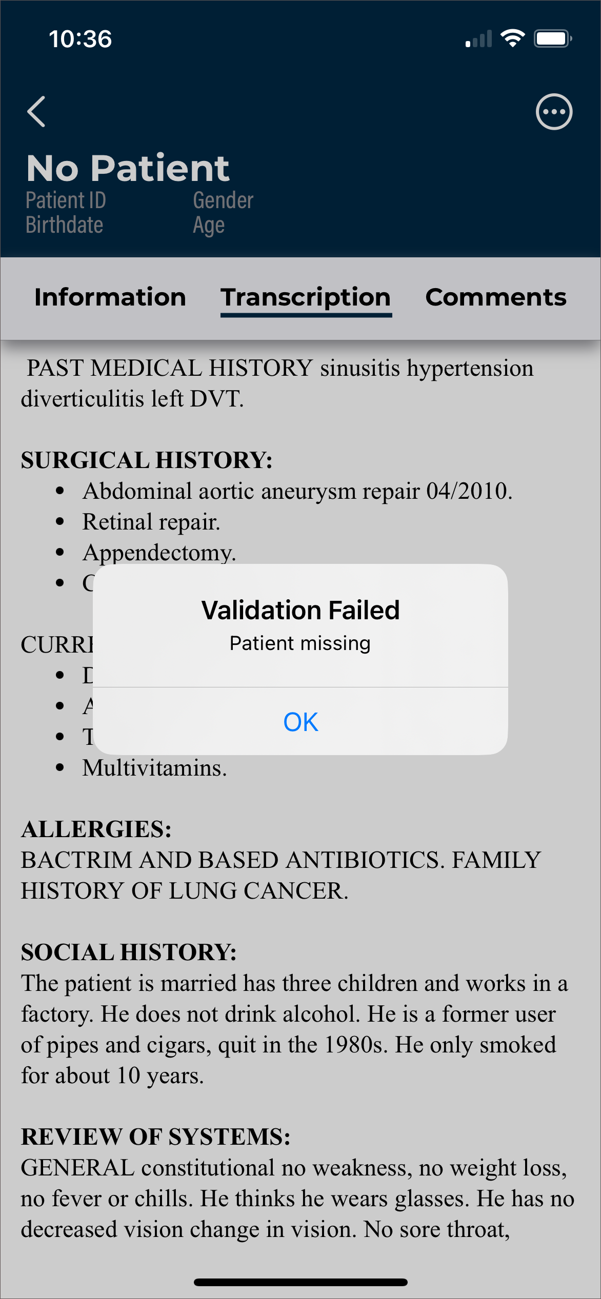 - Verify the correct Document Type and Dictator are selected in the Info tab.