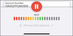 If a phone call is received while dictating, eSOne Mobile will pause the recording. Dictation that was made prior to the incoming call will not be lost; to resume dictating after finishing the call, tap the record button again and continue to dictate.